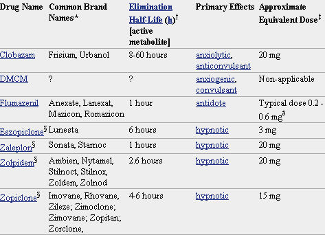 § La estructura molecular de estos fármacos difiere de la molécula de las benzodiazepinas, pero trabajan en los receptores de las benzodiazepinas con los mismos efectos o similares y se cruzan con otras drogas tolerantes.