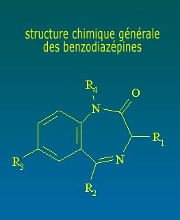 Las BZD son agentes depresores del sistema nervioso más selectivos que drogas como los barbitúricos. Actúan, en particular, sobre el sistema límbico. Las BZD comparten estructura química similar y tienen gran afinidad con el complejo de receptores benzodiazepínicos en el sistema nervioso central. Estructuralmente, las BZD presentan un anillo de benceno con seis elementos, unido a otro anillo de diazepina con siete elementos. Cada BZD específica surgirá por sustitución de radicales en diferentes posiciones.