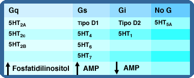 La familia de receptores 5HT2 está conformada por 3 subtipos de receptores ligados a proteína Gq, que estimulan el metabolismo de .
