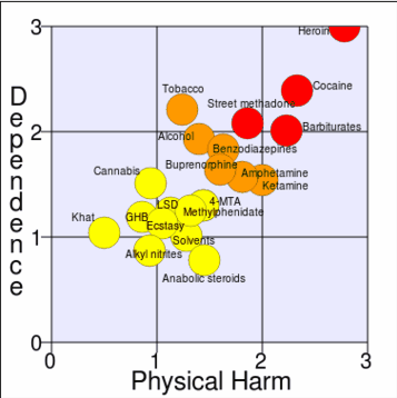 Escala racional para evaluar el daño de las drogas (media daño físico y la media de dependencia).